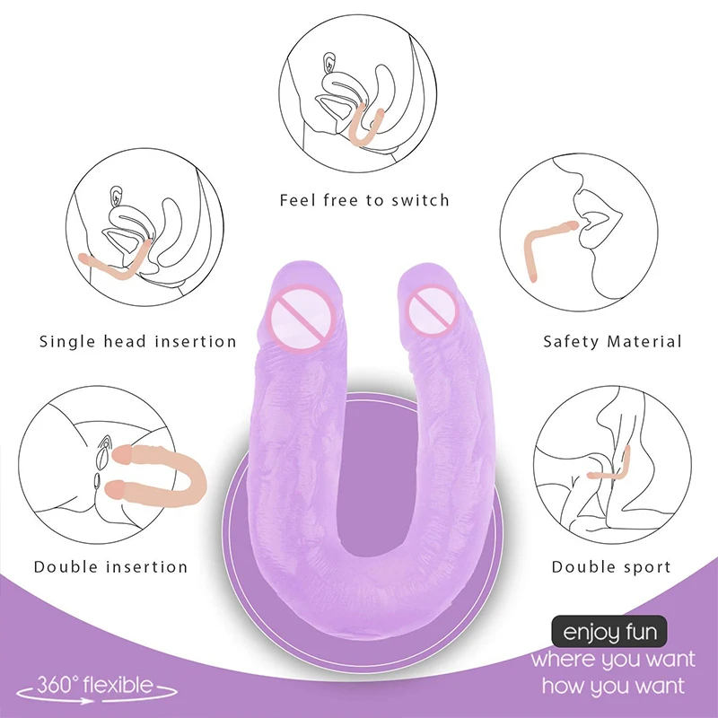 --- Фаллоимитатор изготовлен из мягкого ТПЭ материала, который безвреден для человеческого тела и безопасен.--- Имитация пениса двуглавый фаллоимитатор, может достигать женской вагинальной стенки и шейки матки, Реалистичная голова и текстура, очень подходит для анальных или вагинальных игр,--- Строго в соответствии с формой эргономичного дизайна, подходит для любой женщины, лесбиянок.
