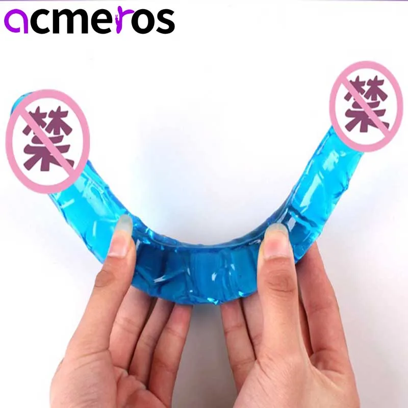 Реалистичный двойной фаллоимитатор для взрослых, вибратор, секс-игрушки, двойной длинный, мягкий, Желейный, для девушек, Вагина, Анальная пробка, Анальная пробка, массаж для женщин