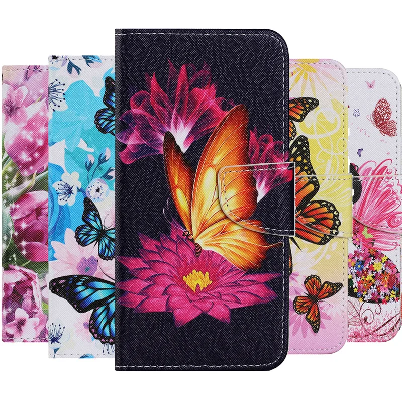 Кожаный чехол-Кошелек с изображением бабочки для Samsung M11 A51 A7...