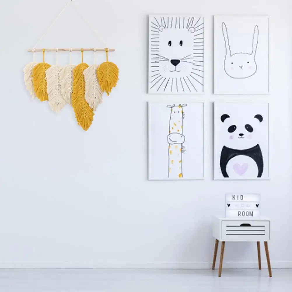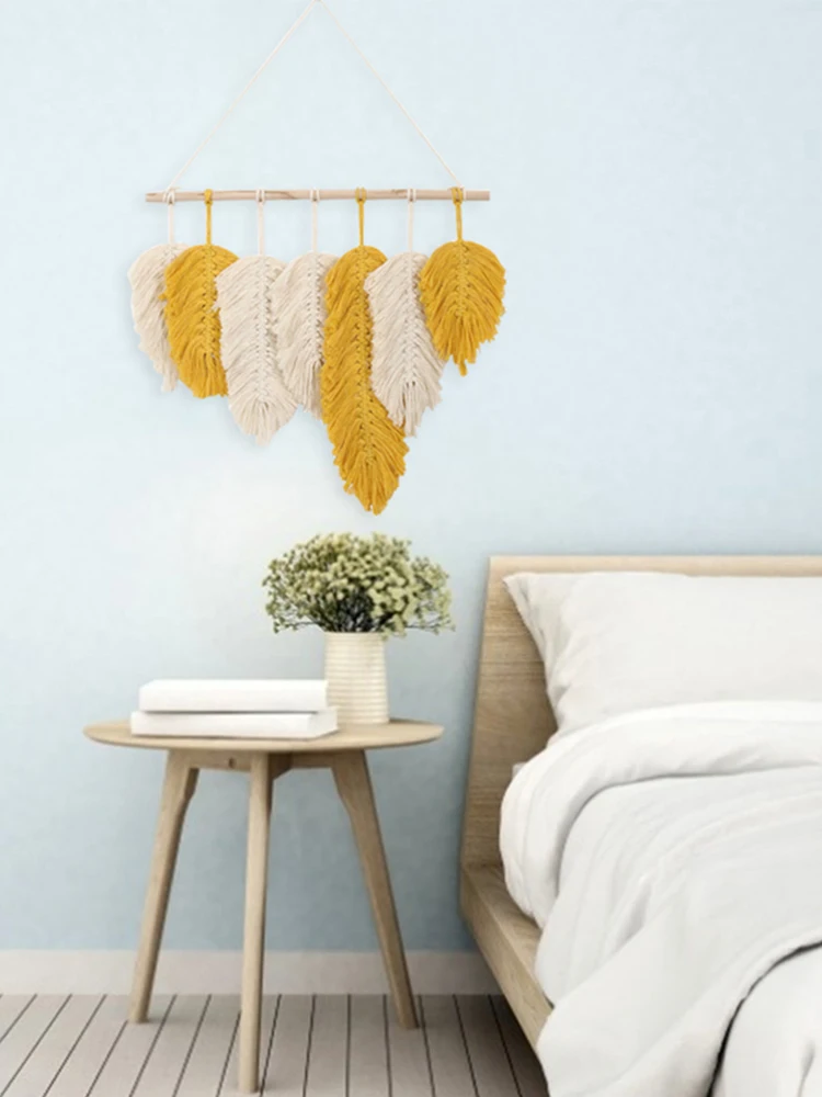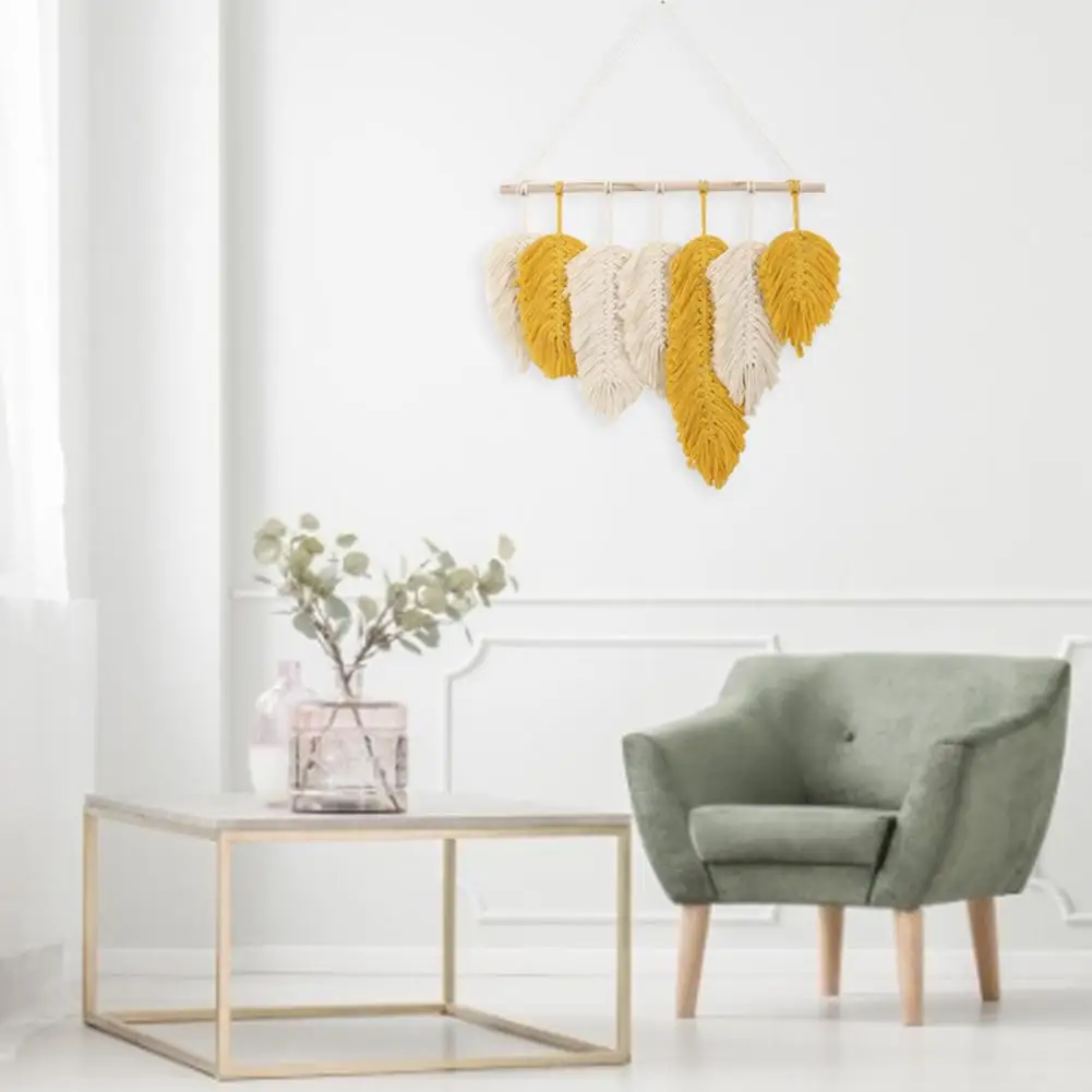 Ручная работа макраме Настенное подвесное перо хлопчатобумажные тканые листья для гостиной подвесные висячие двери в стиле бохо Декор настенный гобелен