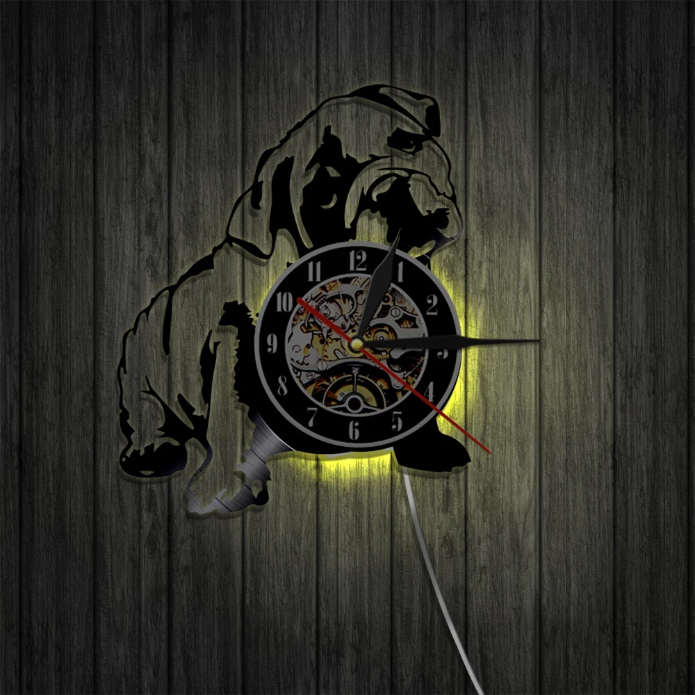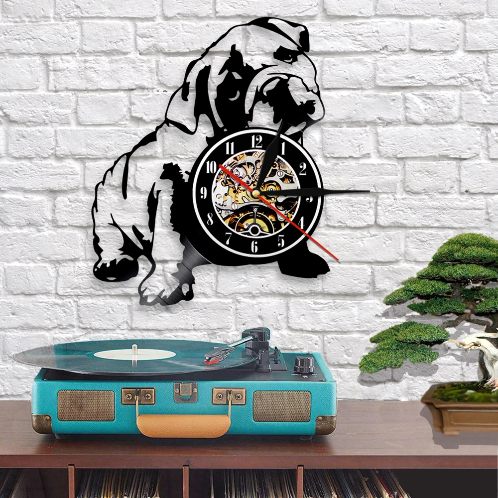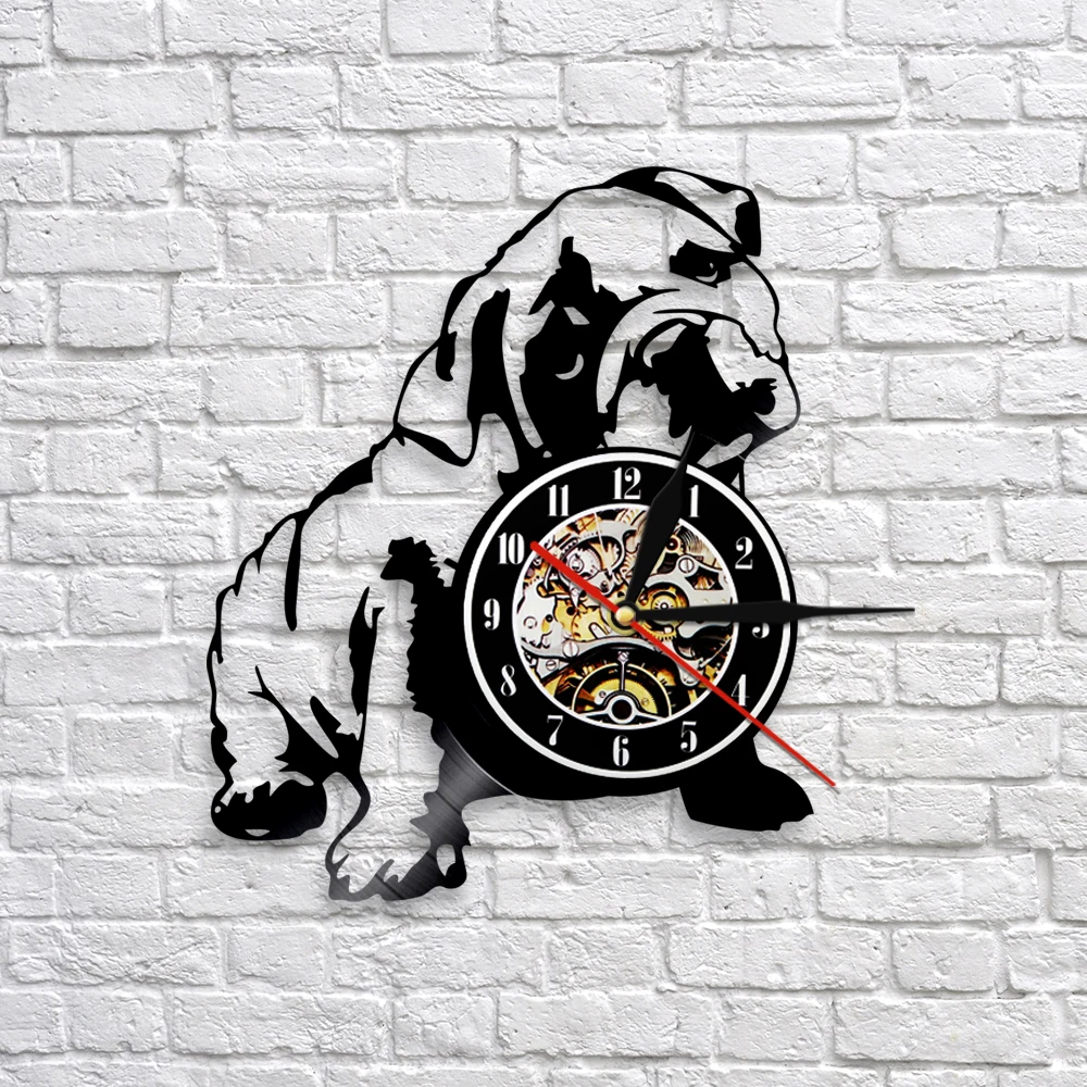 Настенные часы с изображением британского бульдога, собаки, бульдога, питбуля, виниловых пластинок