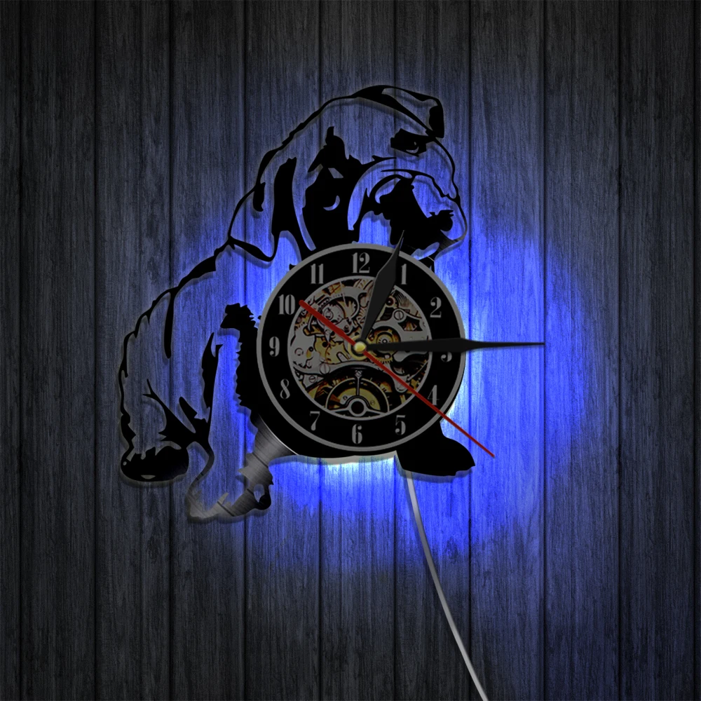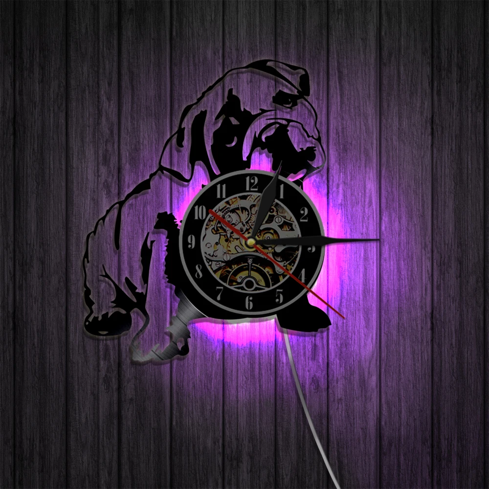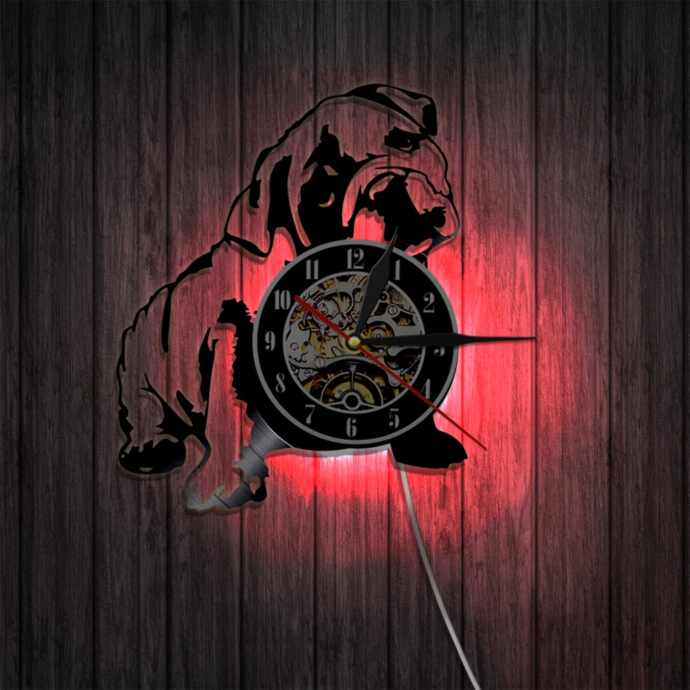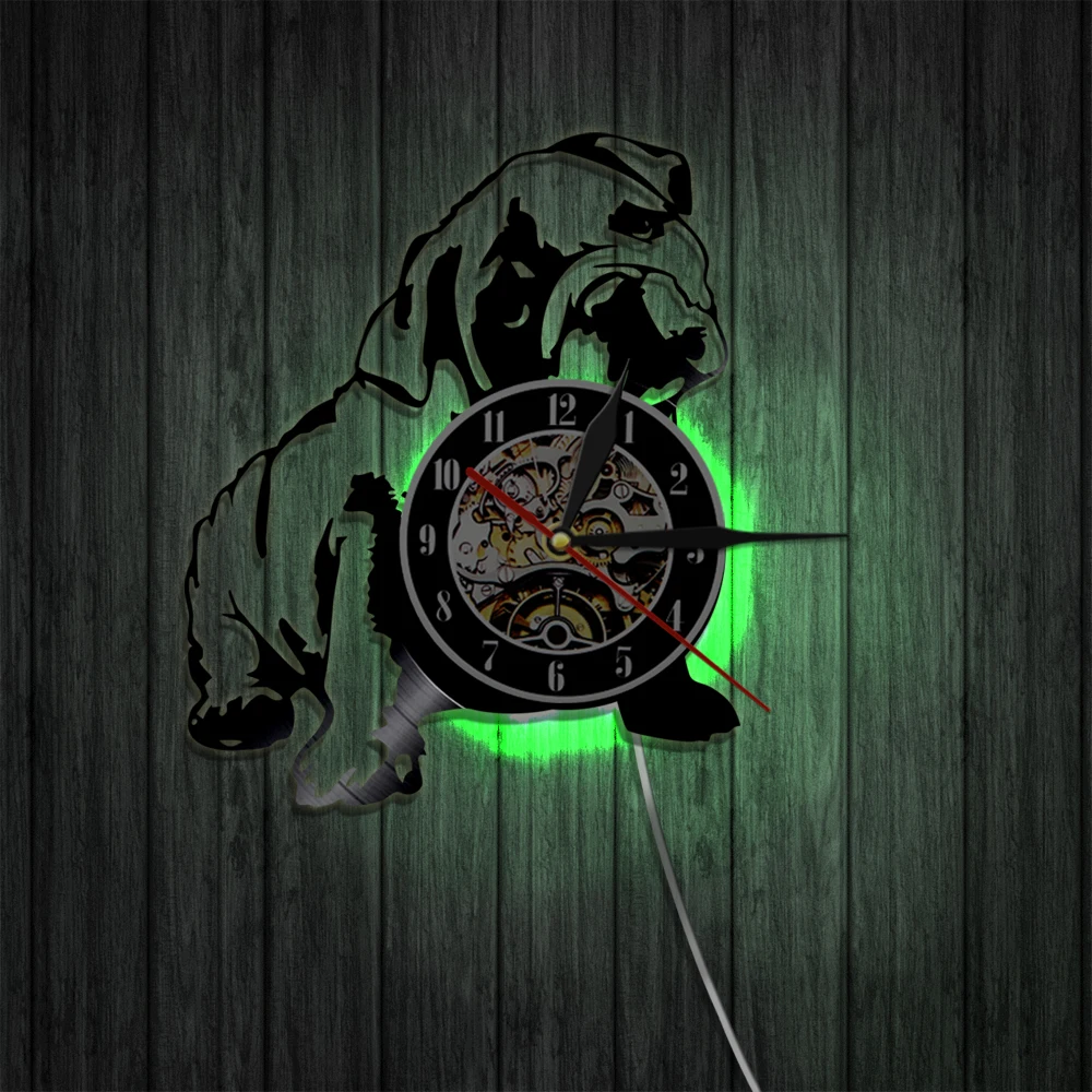Настенные часы с изображением британского бульдога, собаки, бульдога, питбуля, виниловых пластинок