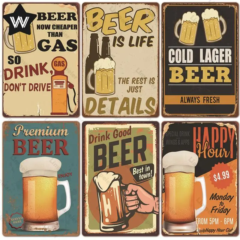 Металлический знак для пива, настенные наклейки, винтажное искусств...