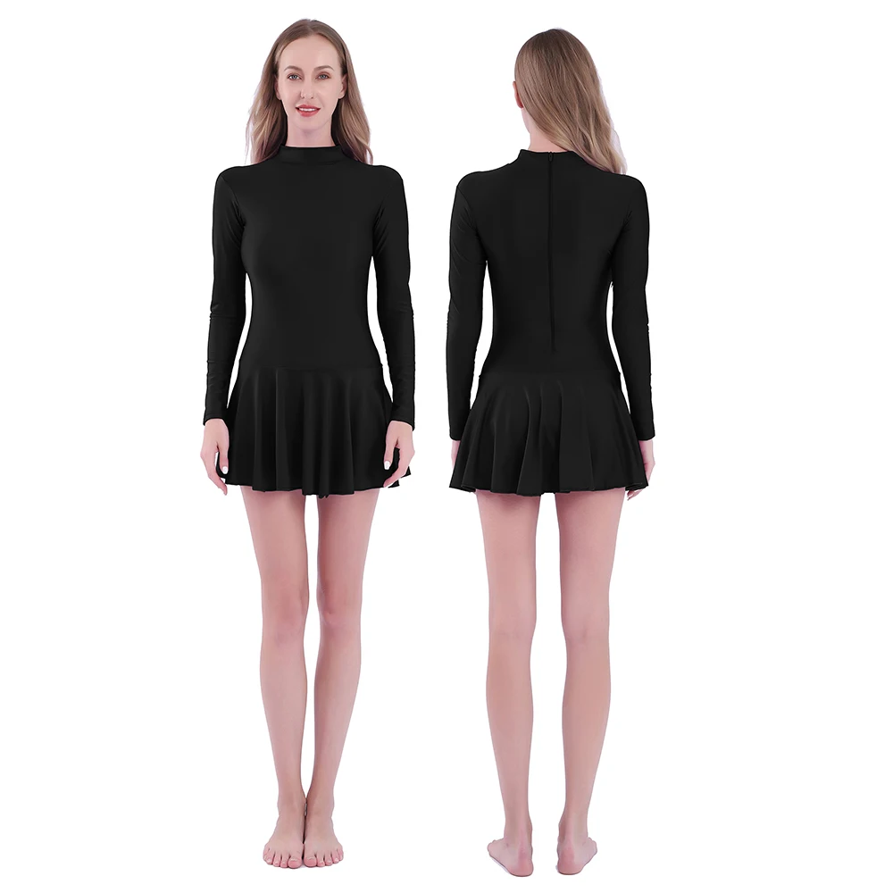 SleeveHigh neck Long-Sleeved skirted Leotards