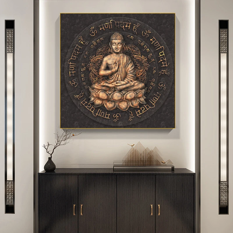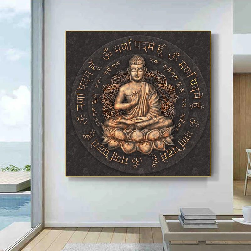 Золотая Статуя Будды, Картина на холсте, буддийская религиозная, на...