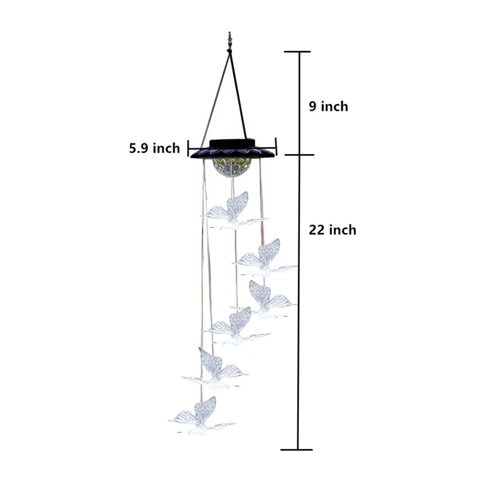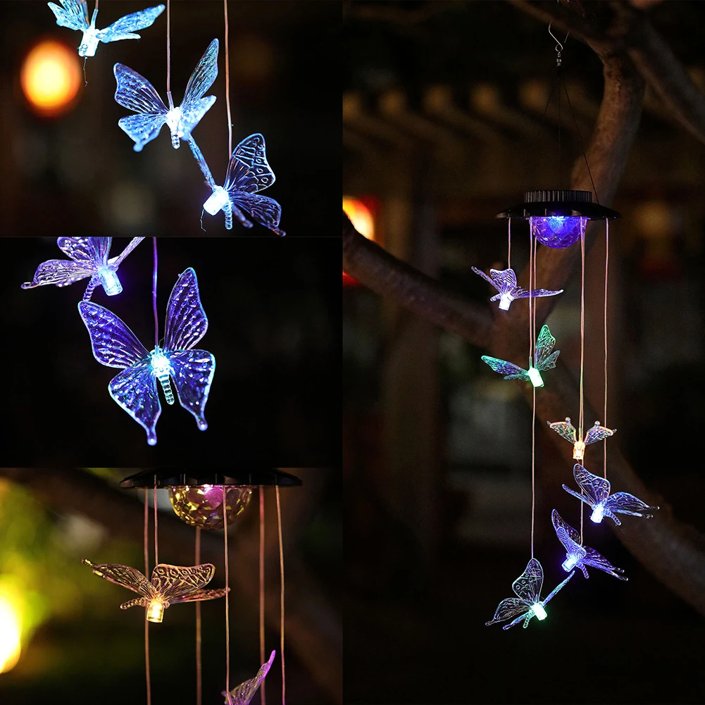 Светодиодный светильник на солнечной батарее, меняющий цвет, ветряные колокольчики, хрустальный шар, солнечный светильник с Колибри, бабочкой, водонепроницаемый светильник для улицы Tianchi