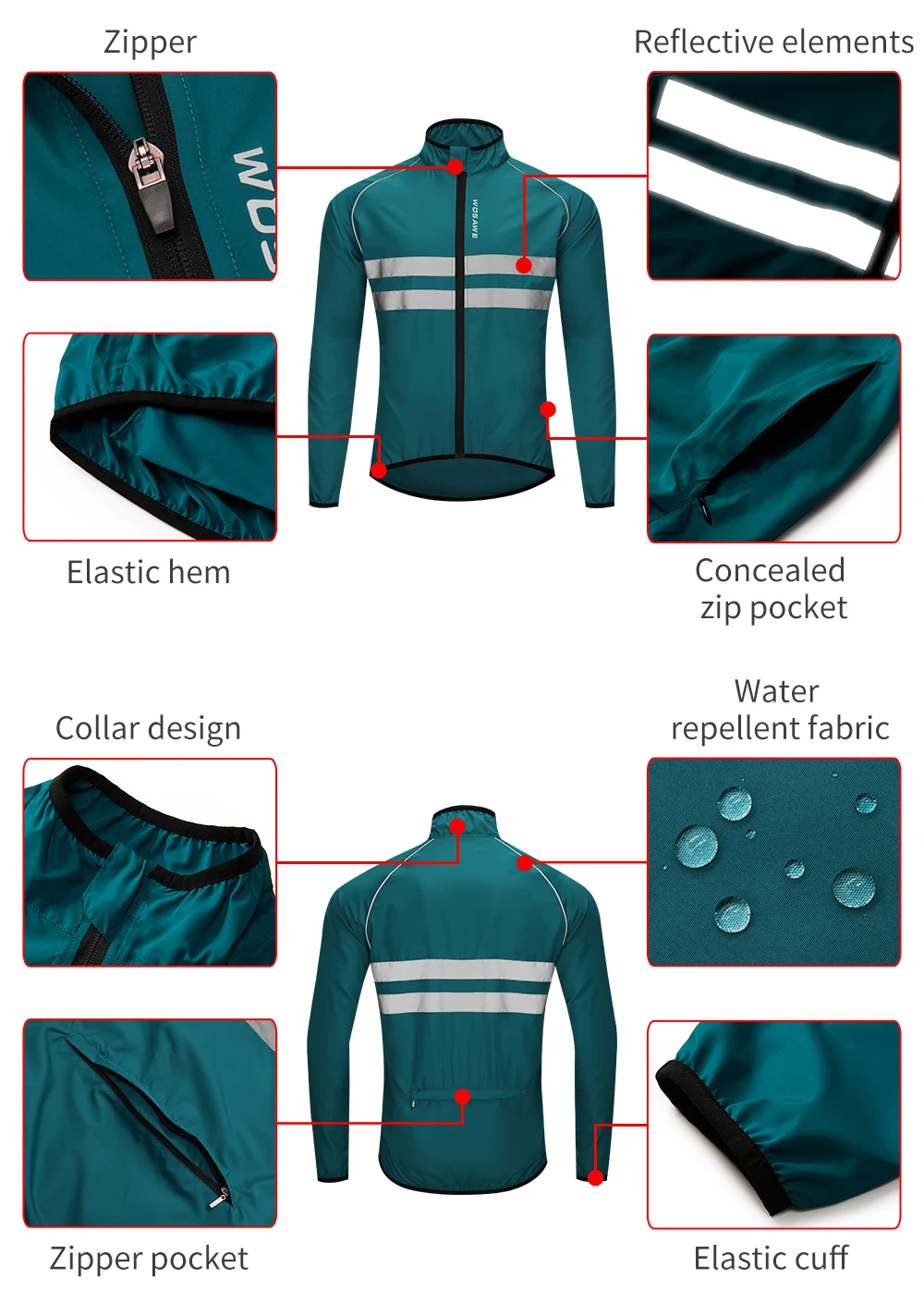 WOSAWE Сверхлегкий Светоотражающие Для Мужчин's велосипедная куртка...