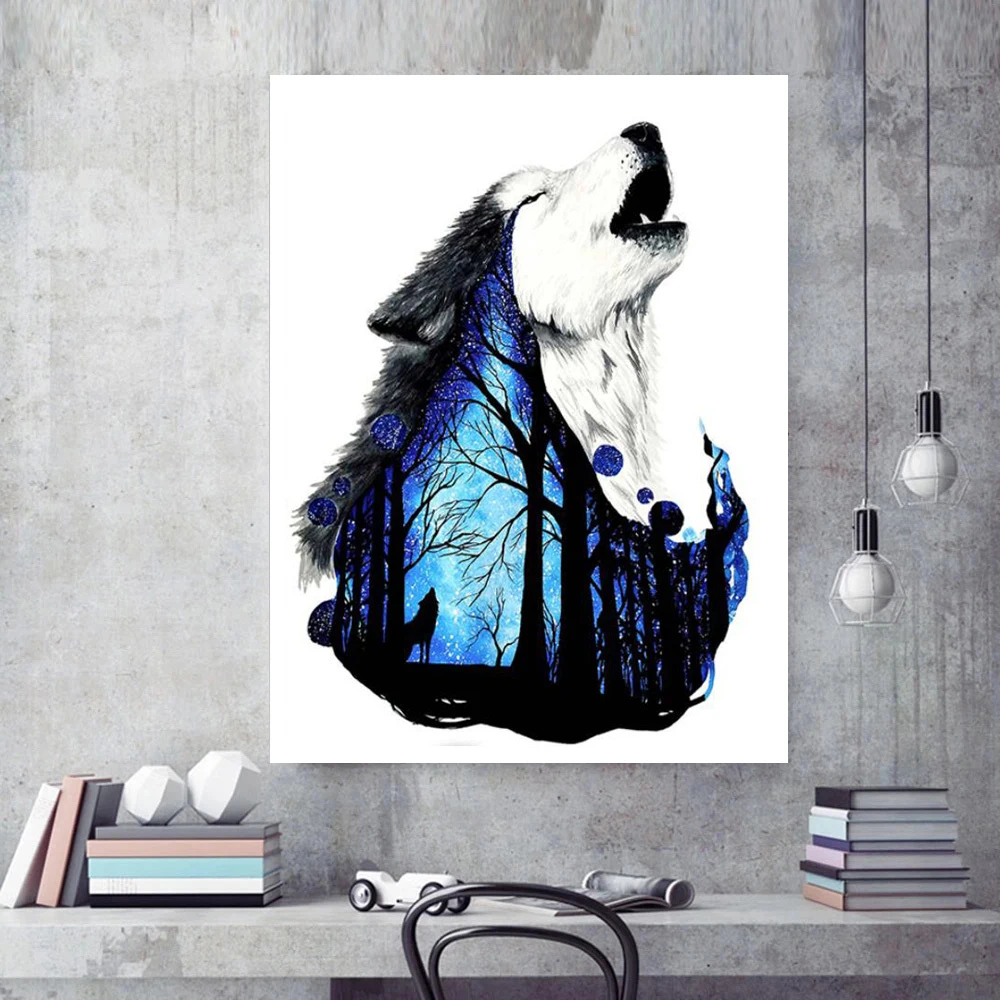 Алмазная живопись, вышивка крестиком, алмазная вышивка, волк, полное сверление, набор для алмазной мозаики, зимний пейзаж, искусство