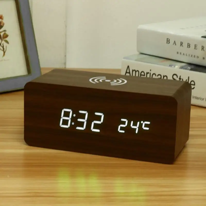 Часы-Будильник Деревянные светодиодсветодиодный цифровые, настольные электронные часы с питанием от дерева, календарь, таймер с голосовым управлением, домашний декор