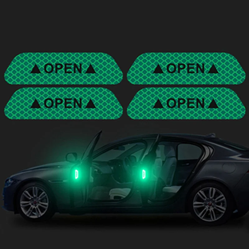 4 шт.компл. Автомобиль открыть светоотрающей полосой Предупреждение Mark ночного вождения Безопасность освещение световой аксессуары лента двери автомобиля наклейки на автомобиль