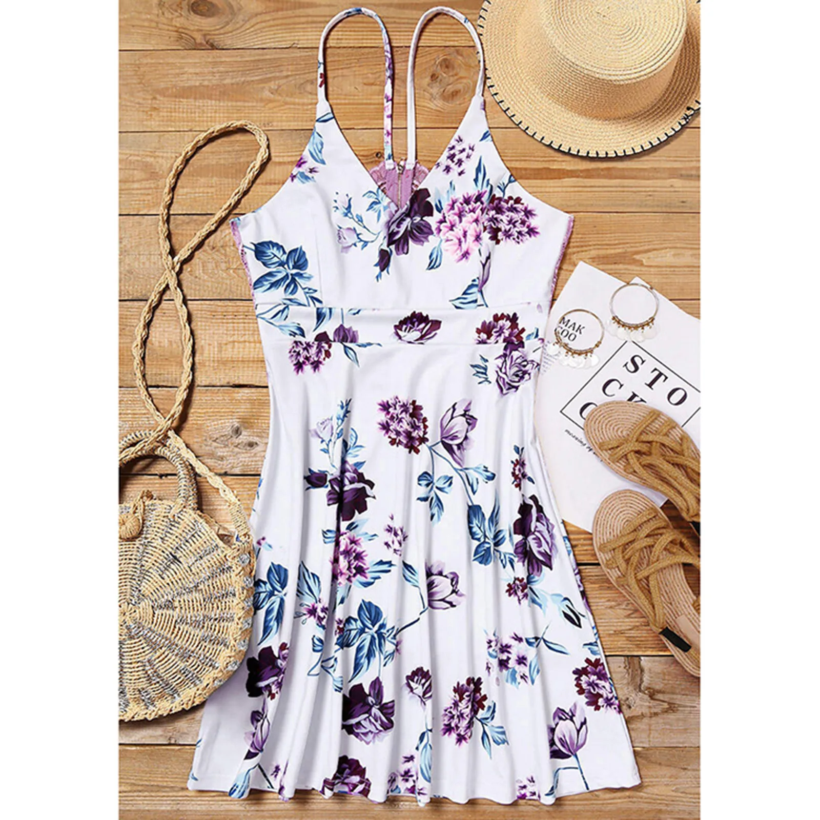 A-Line женский сексуальный кружевной сарафан с цветочным принтом