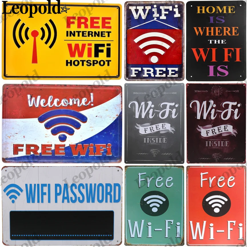 Металлический плакат Добро пожаловать, бесплатный Wi-Fi, винтажная жестяная вывеска для ресторана, кафе, бара, клуба, Украшение стен, настенное Искусство 20x30 см