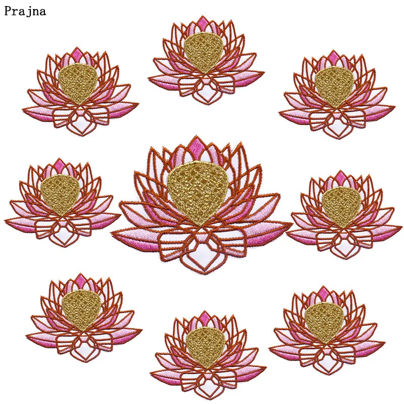 Prajna 10 шт. вышитый Лотос патчи на одежду кристалл цветок патч железо на патчи для одежды наклейки цветок аппликация