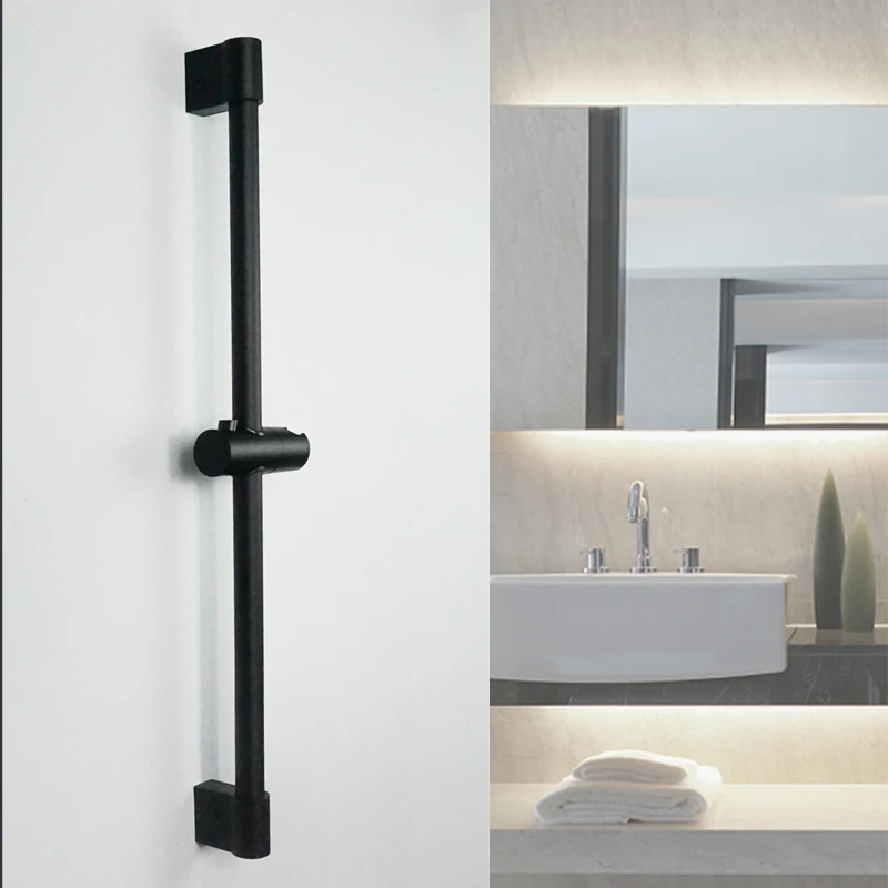Насадка для душа матовая черная регулируемая, с ручным душем и шлангом 1,5 м, настенное крепление, раздвижная душевая стойка