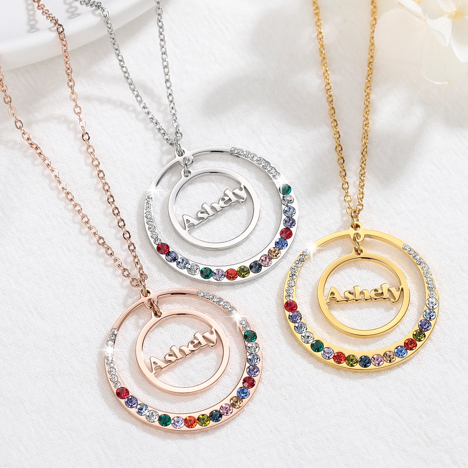 Ожерелье с именем на заказ, персонализированные ювелирные изделия с буквами по месяцу рождения, чокер из нержавеющей стали со сверкающими камнями, золотой кулон для женщин, подарок для сестер