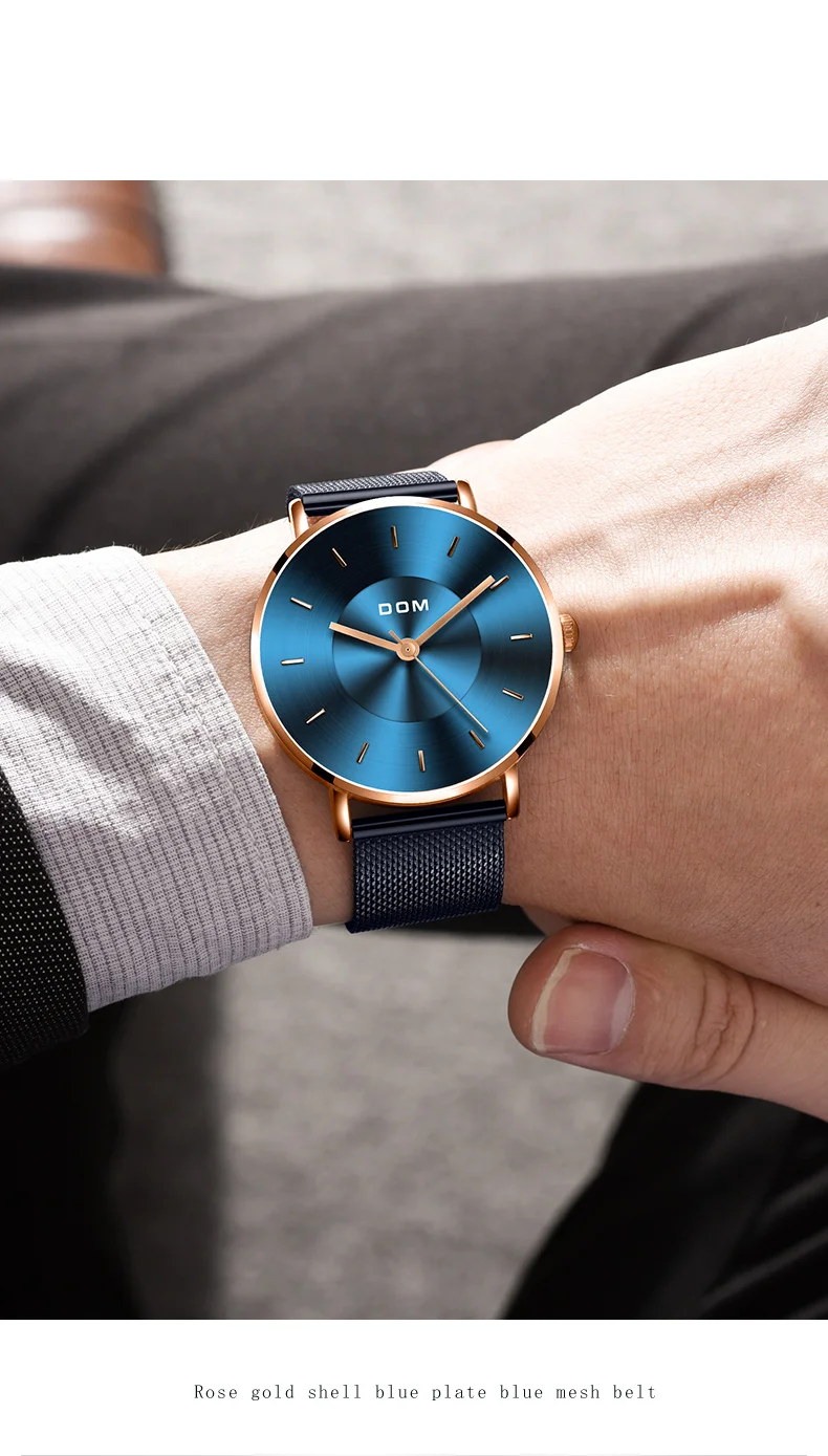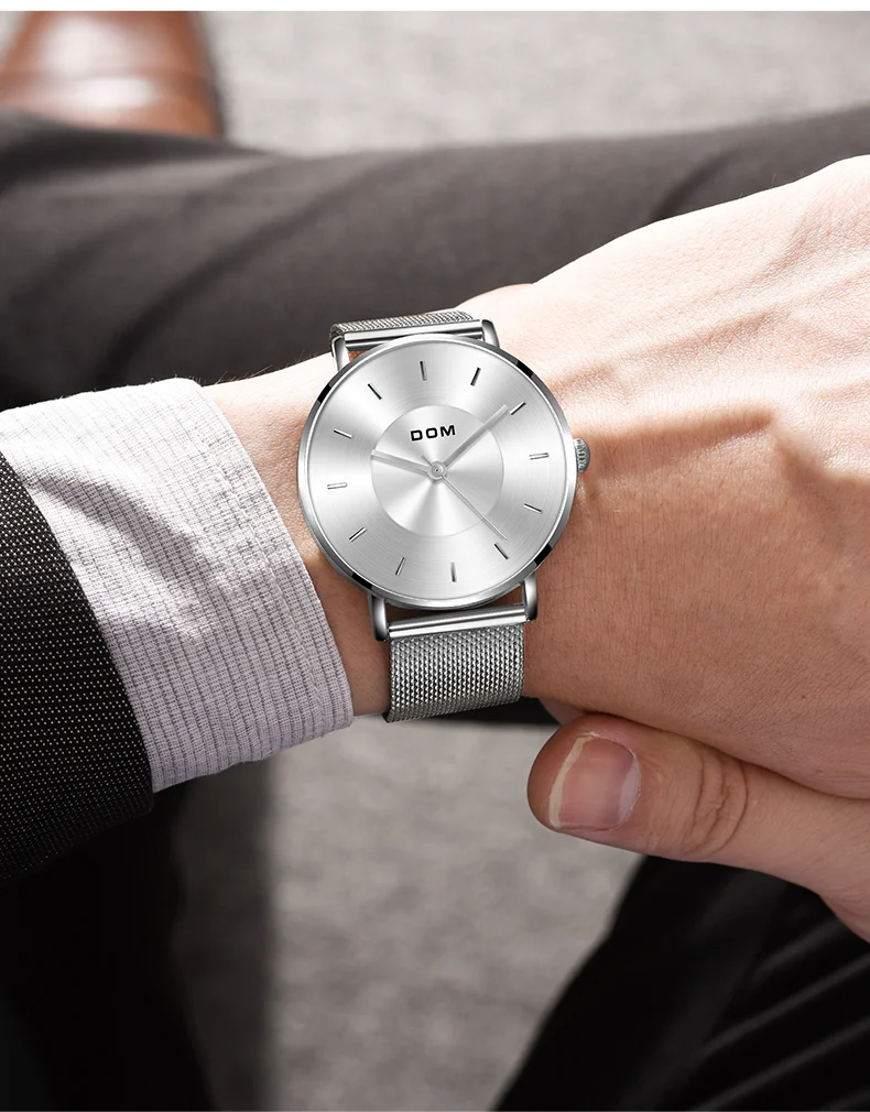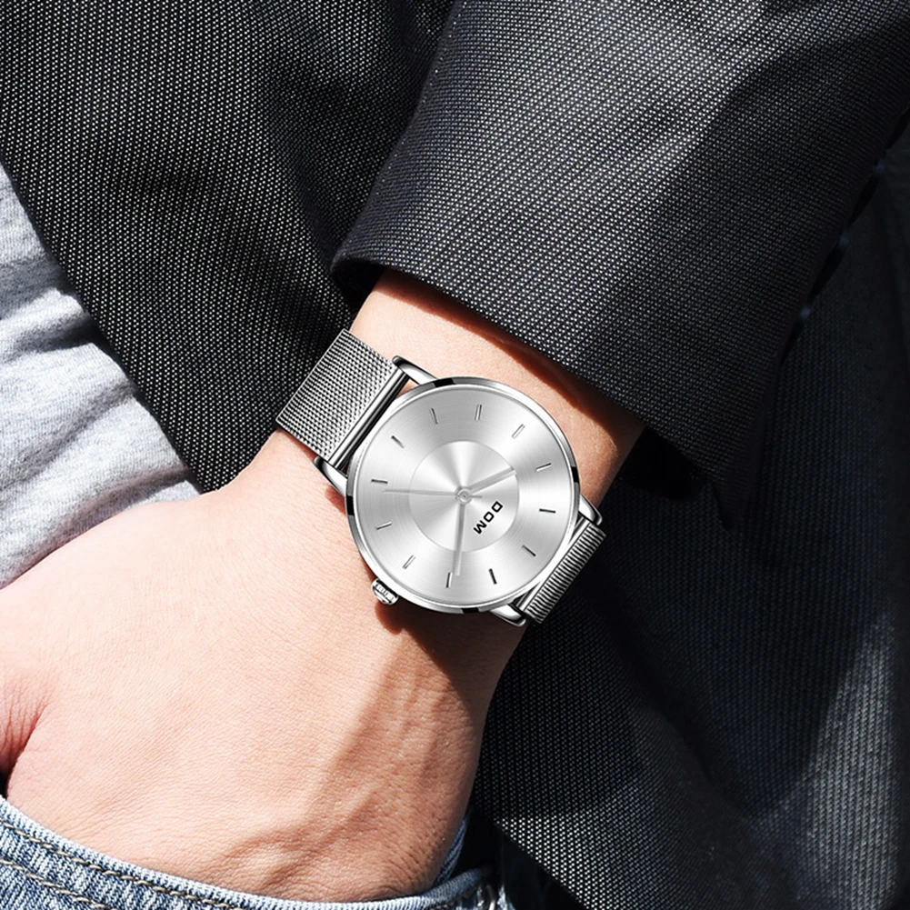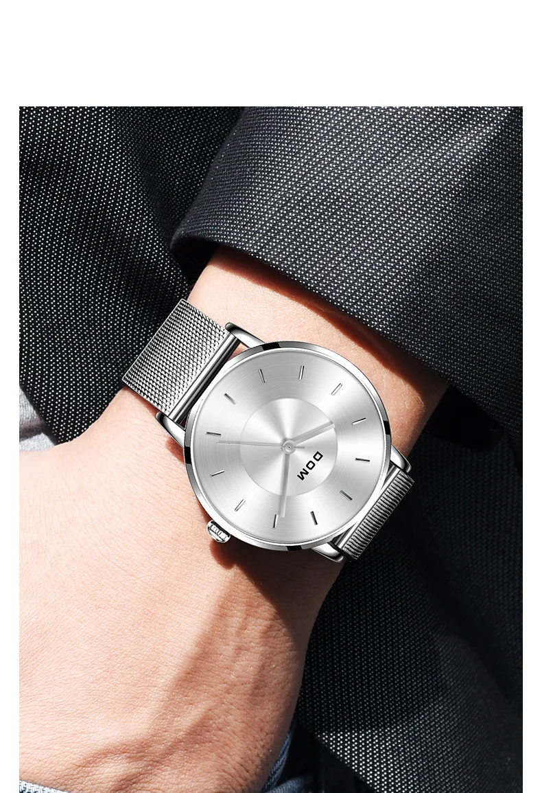 DOM мужские модные минималистичные наручные часы Аналоговые с датой из нержавеющей стали сетчатый ремешок Спортивные кварцевые часы мужские часы