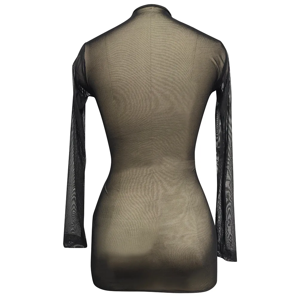 Порно сетчатые топы с длинными рукавами мини-платье сексуальное жен...