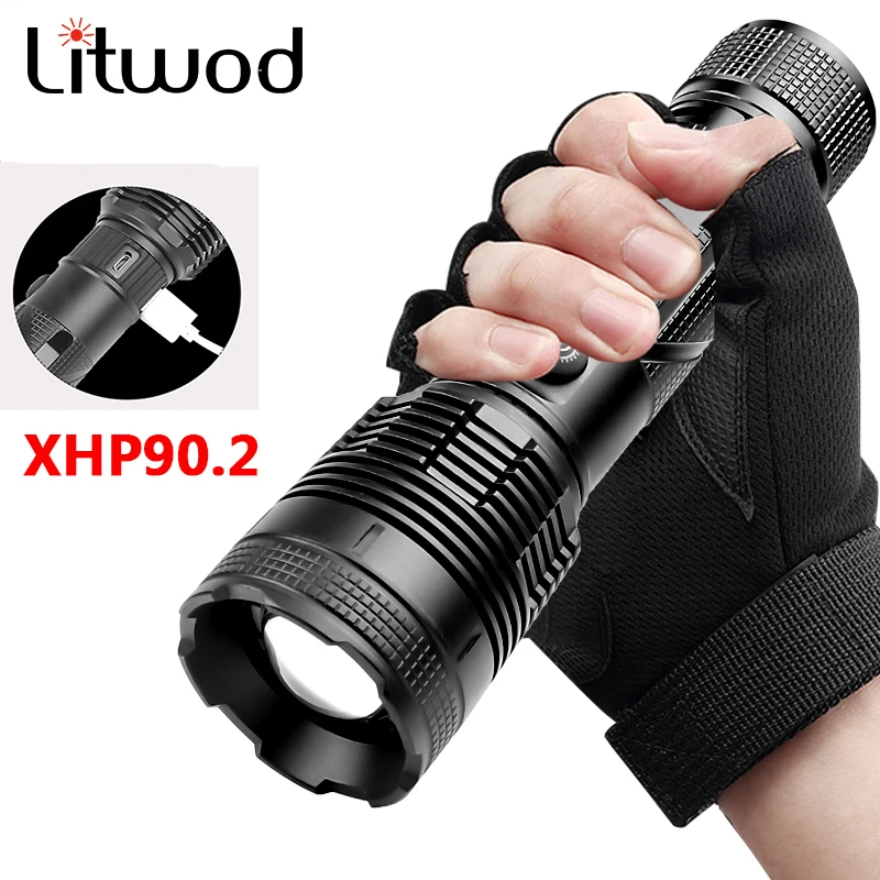 Фонарик XHP90.2, 4-ядерный, светодиодный, масштабируемый, Usb, пере...
