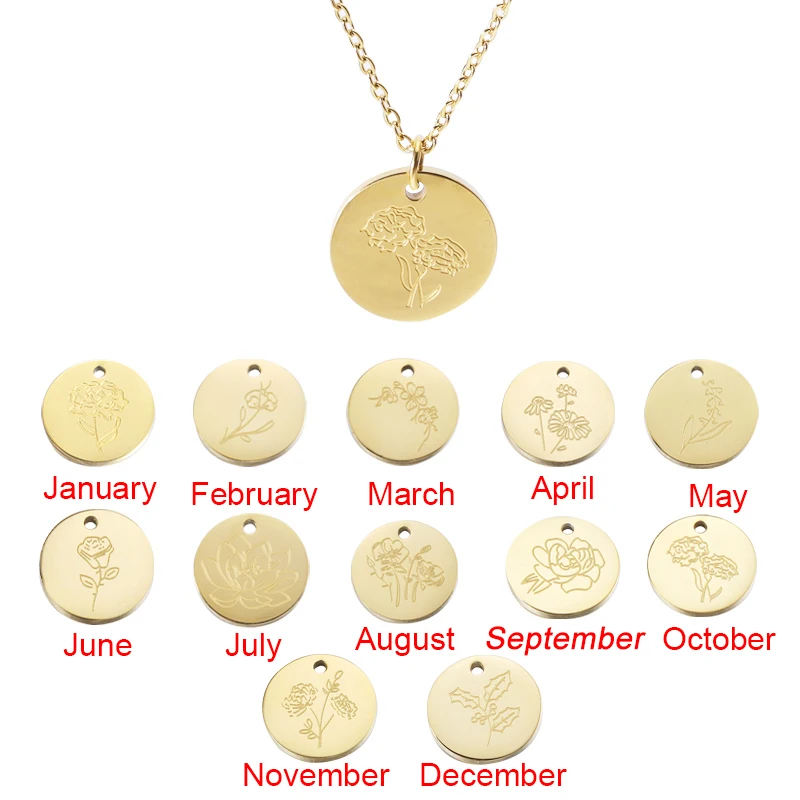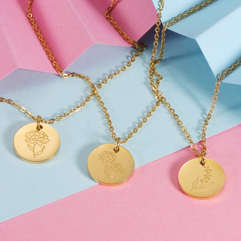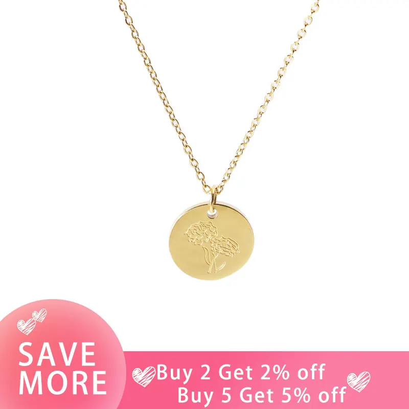 Fnixtar, 12 шт., гравировка, ожерелье с подвеской в виде цветка на день рождения, цепочка из нержавеющей стали с крестом, ожерелье для мужчин и женщин, модные ювелирные изделия 2021