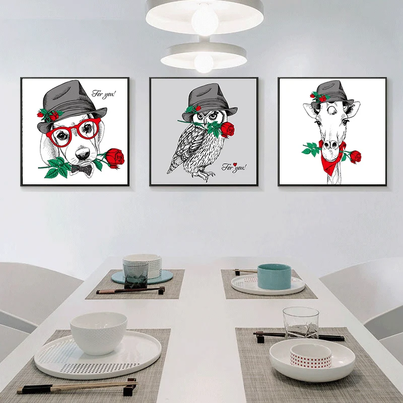 Романтические розы с принтом собаки совы жираф холст для живописи Wall Art печать плакатов картина для детской комнаты Гостиная домашний декор бесплатная доставка