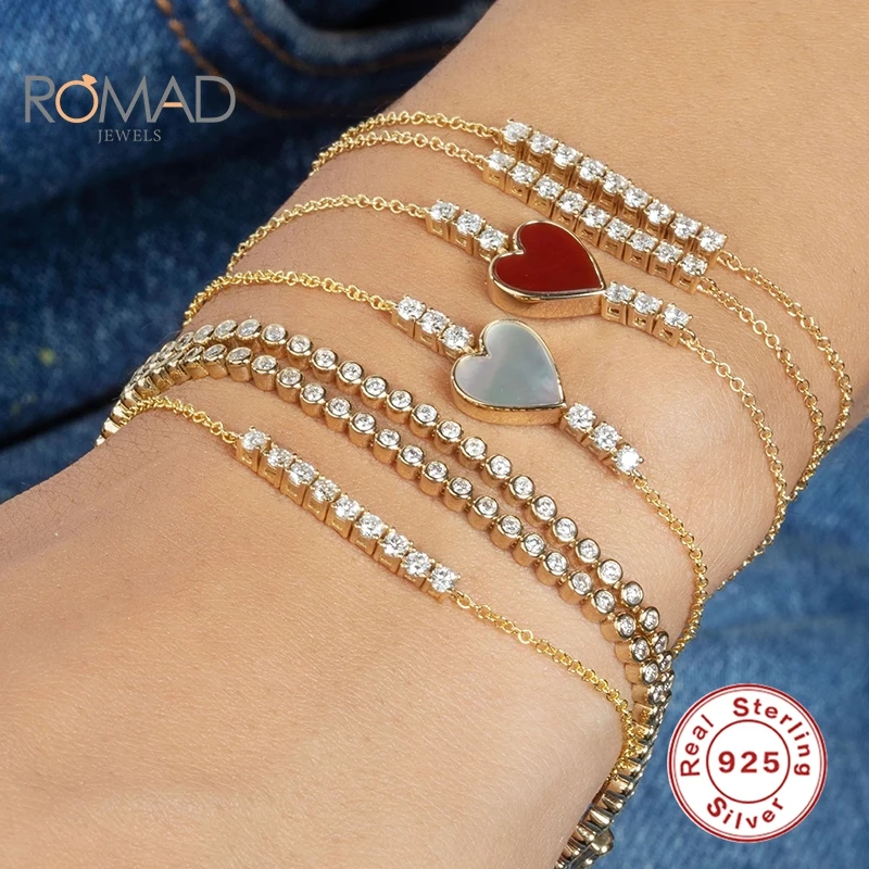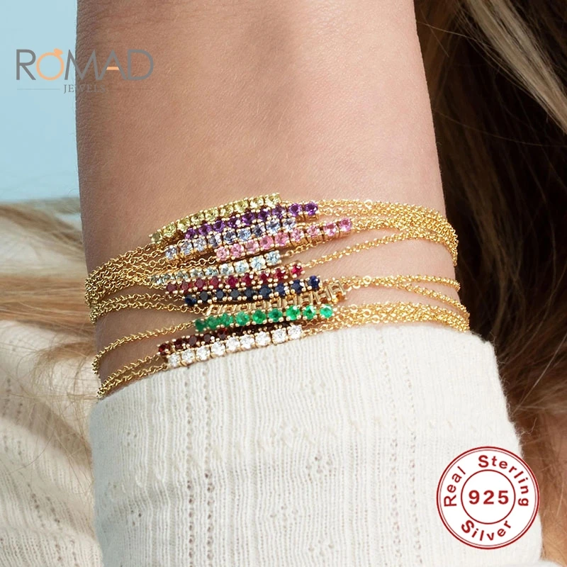 ROMAD 925 стерлингового серебра браслеты для женщин, яркие розовые, зеленые, черные, синие, циркон браслеты Pulsera плата 925 Mujer Femme