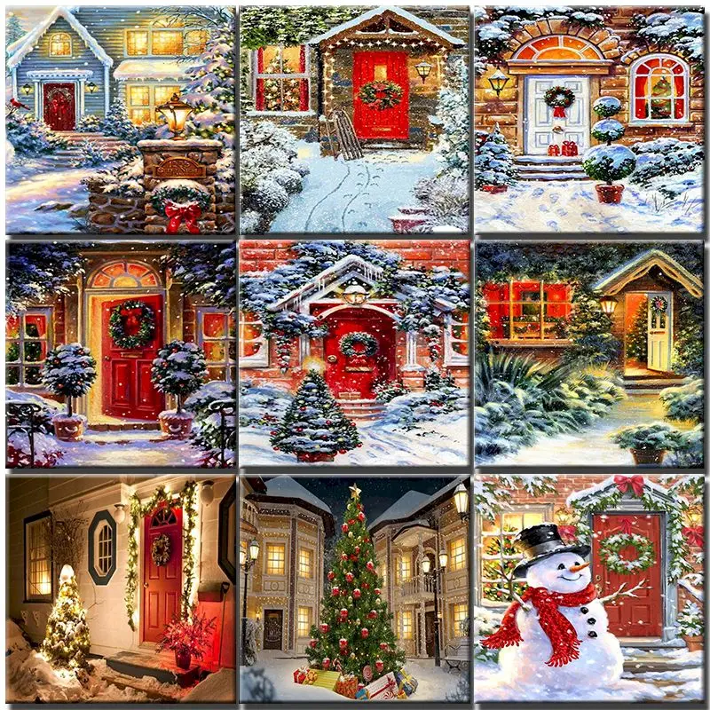 Рождественские ворота Рисование по номерам наборы для самостоятельной сборки для взрослых на холсте с рамкой животные Акриловая Краска Рисование Раскрашивание по номерам Декор
