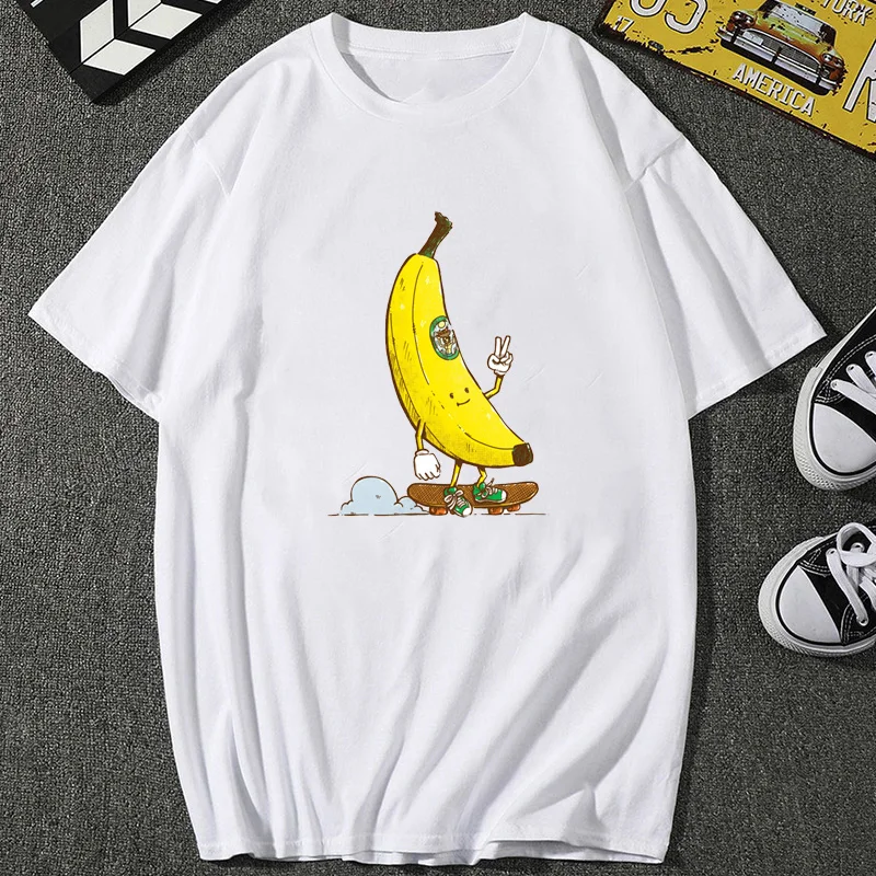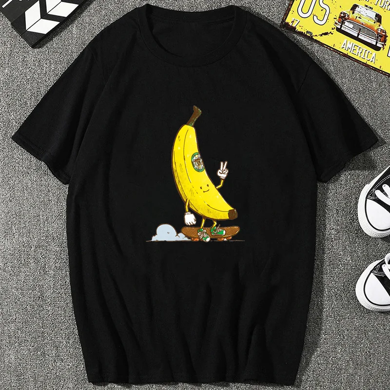 Новая забавная мультяшная Мужская футболка с принтом банана, Повседневная Уличная одежда с аниме, футболка большого размера, мужская Милая уличная футболка унисекс в стиле Харадзюку