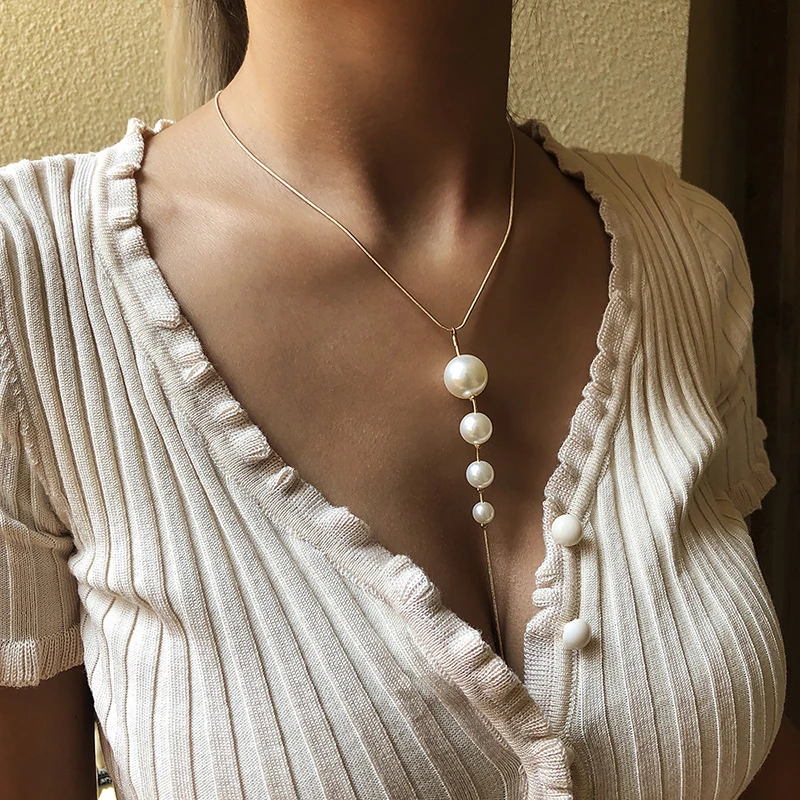 Ожерелье с подвеской из искусственного жемчуга женское, винтажное простого дизайна, цепочка на шею, бижутерия в эстетическом стиле, аксессуары, подарок