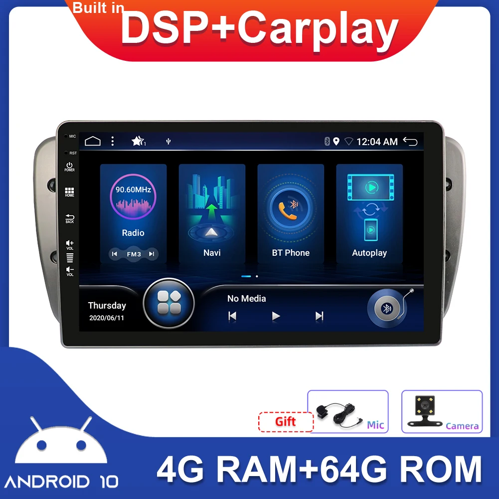 Автомагнитола 9 дюймов, Android 10, стерео, GPS-навигация для Seat Ibiza 6j 2009-2014, Bluetooth, Wi-Fi, RDS, SWC, микрофон, камера DSP Carplay, 4 Гб + 64 ГБ