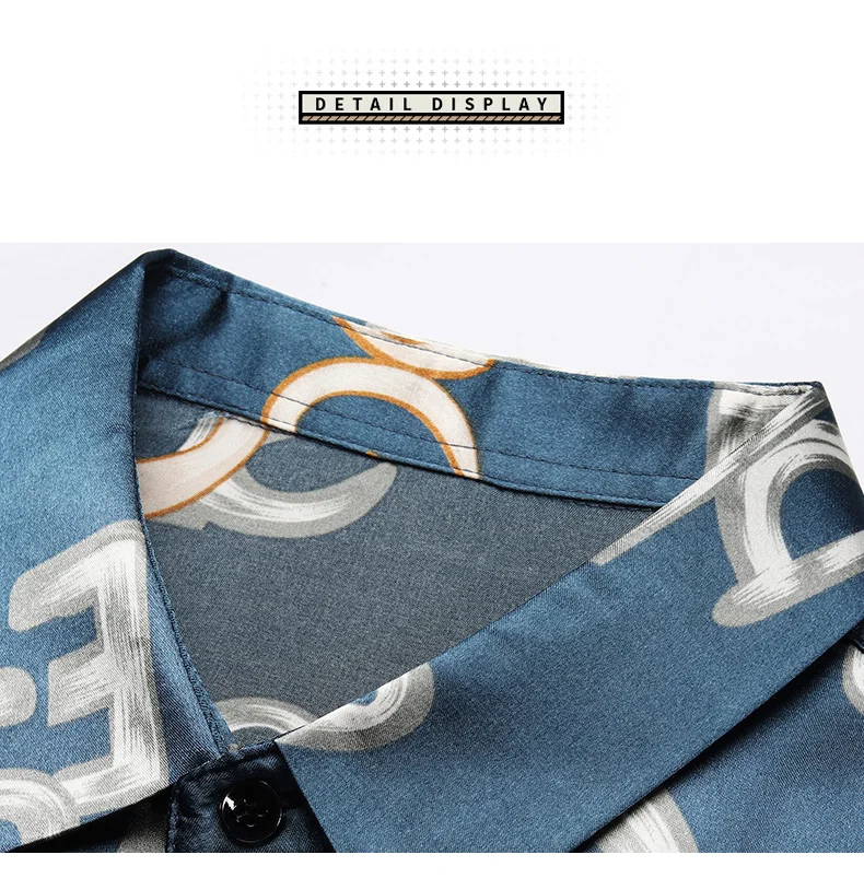 Рубашка мужская приталенная с принтом, шелковая Хлопковая сорочка с...
