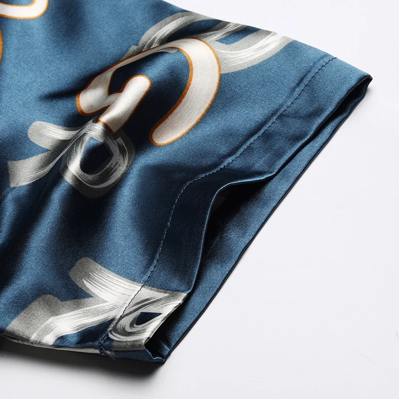 Рубашка мужская с принтом, шелковая Хлопковая сорочка с коротким ру...