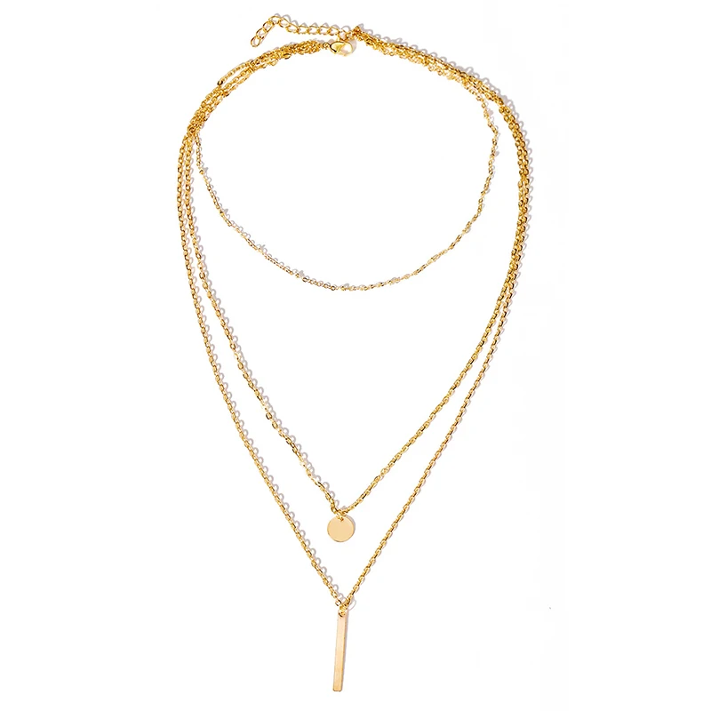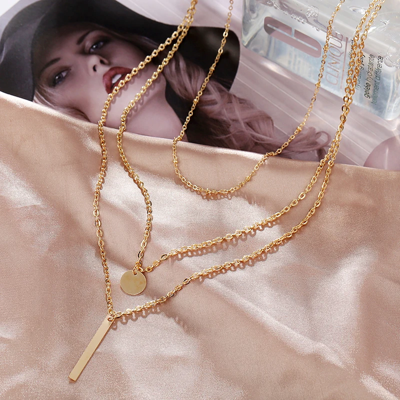 Цепочка на шею с блестками женская, цепочка с многослойной металлической полосой с кулоном, бижутерия, хороший подарок