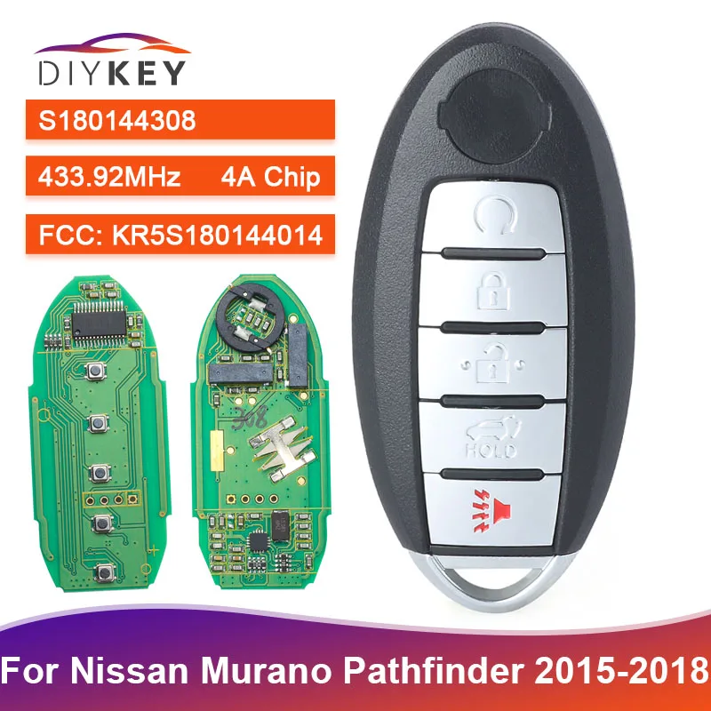 Пульт дистанционного управления DIYKEY S180144308 KR5S180144014 433,92 МГц с чипом 4A для Nissan Murano Pathfinder 2015 2016 2017 2018, 5 кнопок