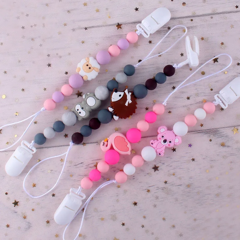 Силиконовая подвеска с мультяшным рисунком, цепочка-пустышка с бусинами для маленьких мальчиков и девочек, пустышка с зажимом для кормления