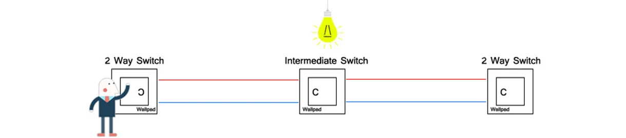 1 способ означает, что вы можете включить свет только в 1 месте.2 способа означает, что этот переключатель может работать с другим выключателем в другом месте, так что вы можете включить лампу в 2 местах. Например, вы можете включить свет у двери и выключить его на кровати.3-полосный промежуточный означает, что вы можете включить лампу в 3 или более местах