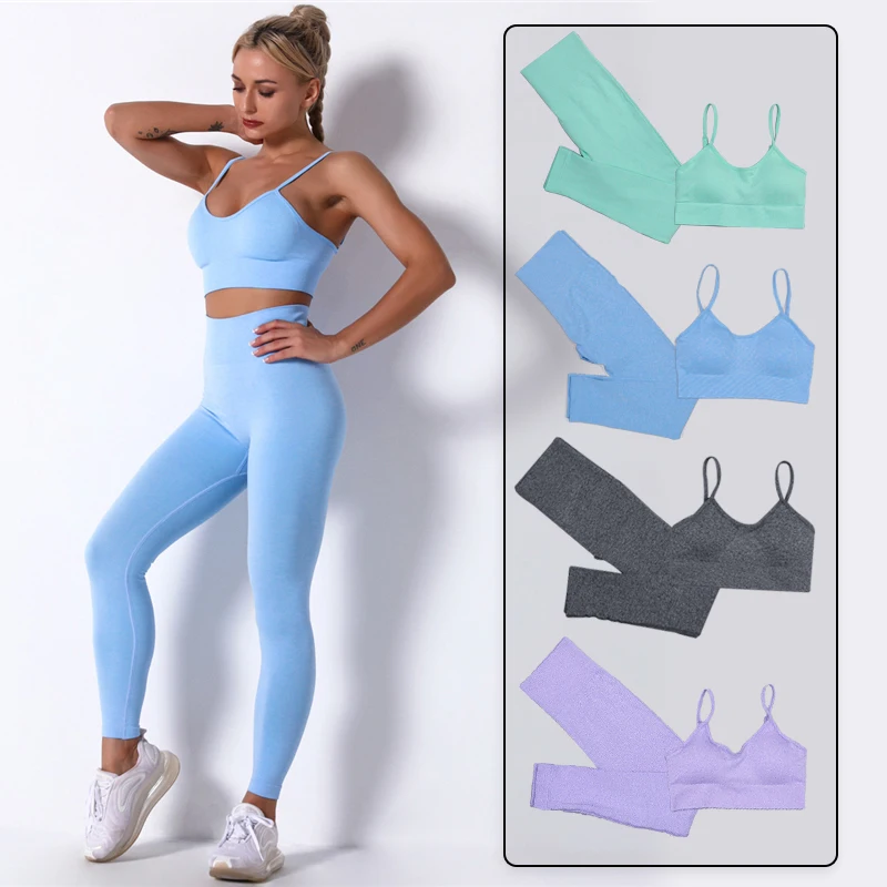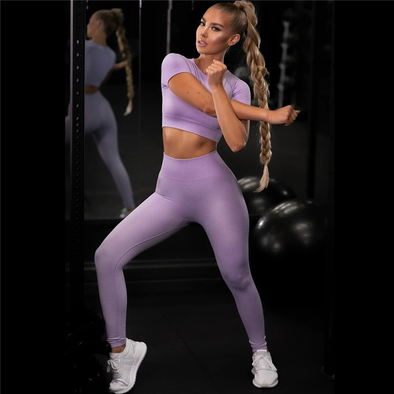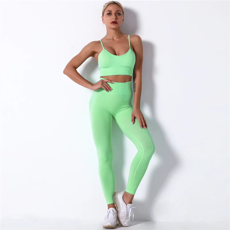 Бесшовный Женский комплект для йоги, тренировочный спортивный костюм, одежда для тренажерного зала, спортивная одежда с высокой талией, укороченный топ для фитнеса, леггинсы с высокой талией