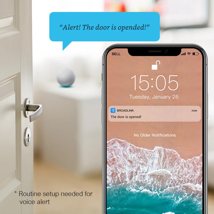 BroadLink Smart Door/Window Sensor-Hub входит в комплект, 2,4G беспроводной контактный датчик на батарейках для системы сигнализации и автоматизации умного дома, работает с Alexa, Google Home (нужен датчик двери + концентратор) обнаруживает открытый/закрытый статус дверей/окон и триггеров устройств и сцен для домашней автоматизации. Он также отслеживает несанкционированные записи и предупреждает вас на телефоне с уведомлениями. • Активируйте сцены и управляйте устройствами при открытом/закрытом обнаружении; • Работает с другими брендами в приложении Alexa / IFTTT; • Push-уведомление для несанкционированных записей; • сменная батарея с уведомлением о низком заряде батареи.