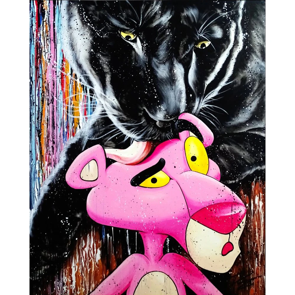 Картина на холсте с изображением розовой Пантеры, черного кота, Мул...