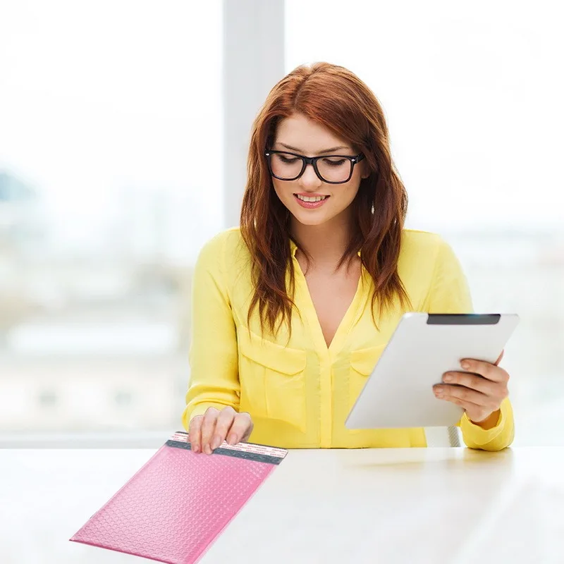 100 шт. Пузырчатый конверт розовый водонепроницаемый пластиковый пу...