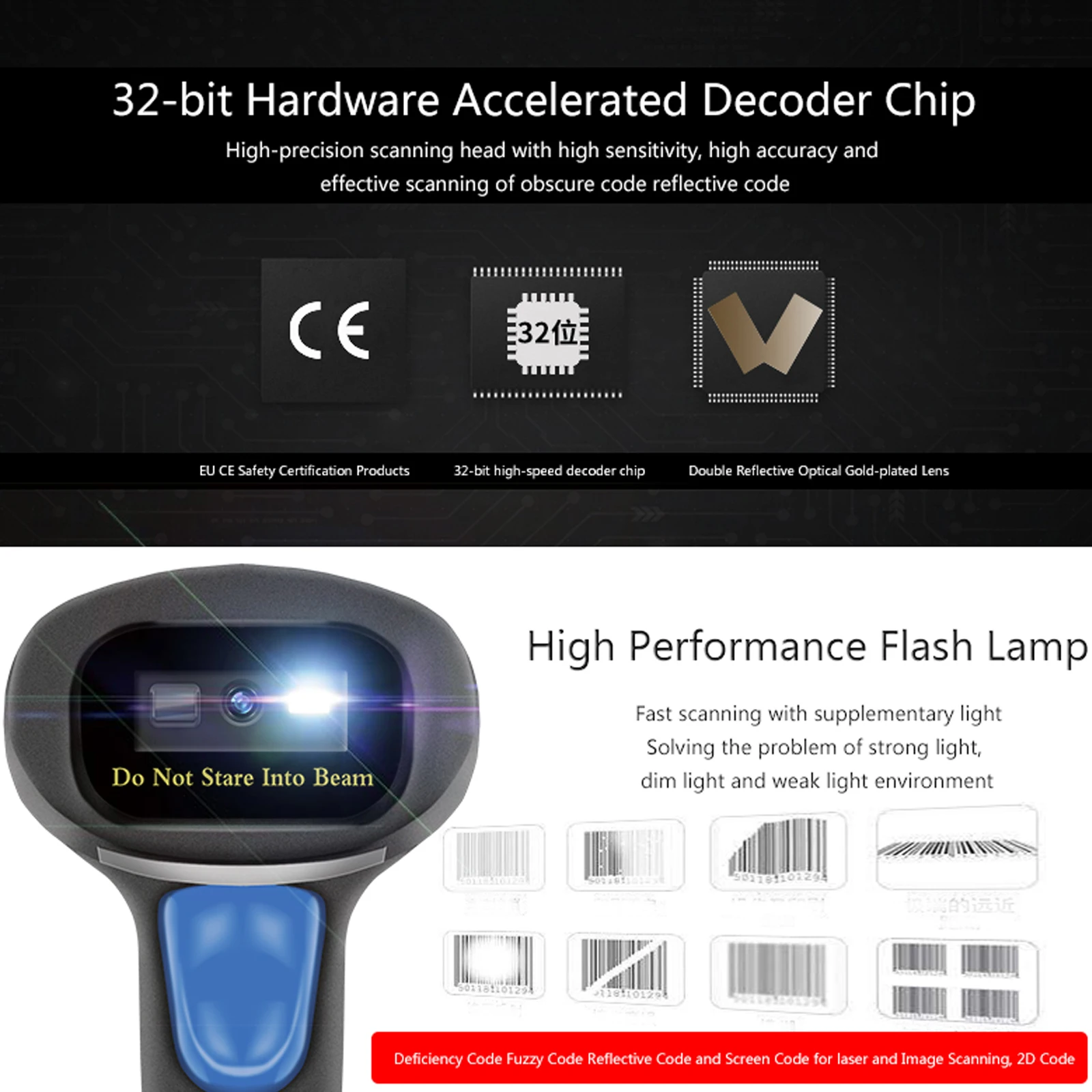 Автоматический считыватель штрих-кодов ручной сканер штрих-кодов CMOS Imager считывает 1D, 2D, QR-код, матрицу данных, PDF417 для магазина, супермаркета, POS и инвентаря