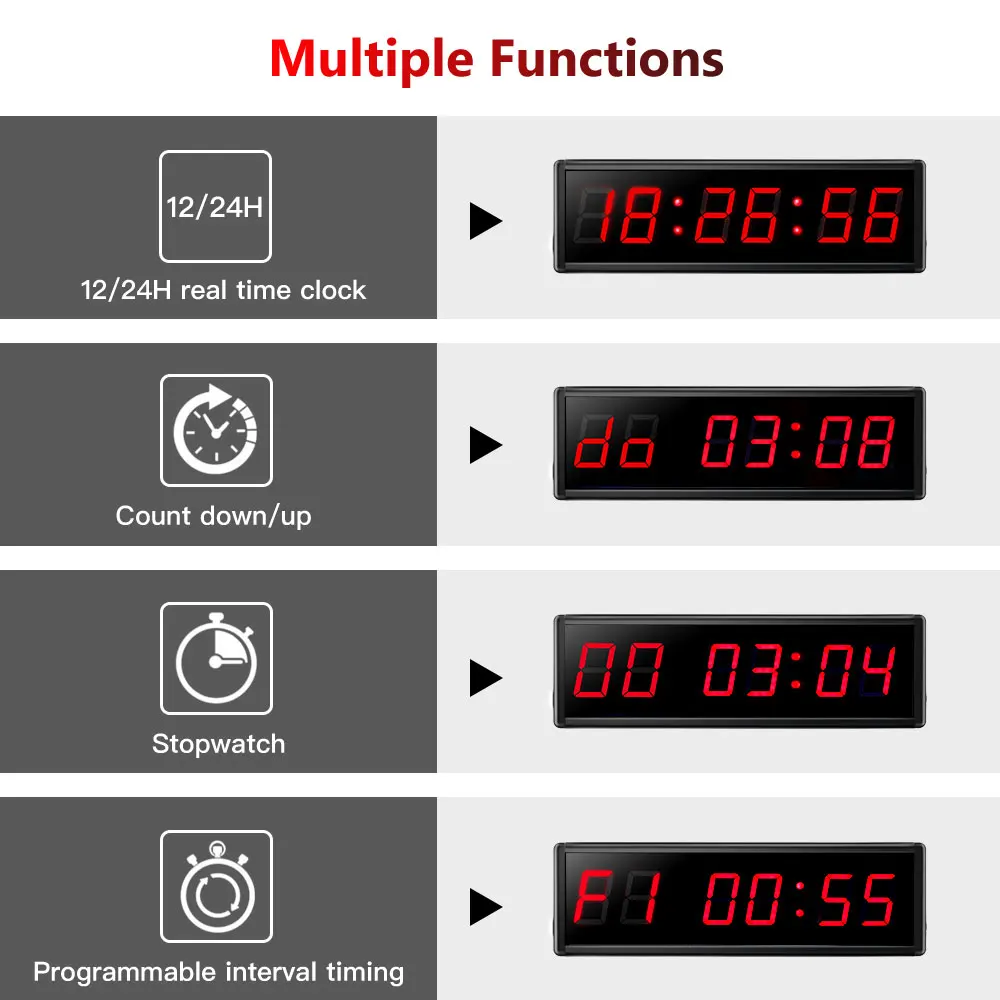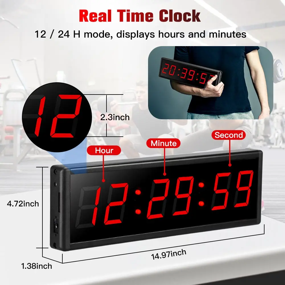 Светодиодный таймер для тренажерного зала 2,3 дюйма, таймер с интервалом, настенные часы с обратным отсчетом, таймер для фитнеса, секундомер для дома, тренажерного зала, фитнеса, часы в режиме реального времени