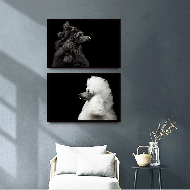 Холст Картина благородный пуделем; Черно-белые настенные художественные плакаты и принты картины для Гостиная Спальня украшения домашнего декора