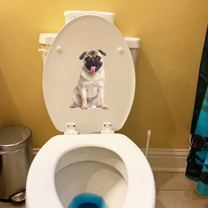YOJA 15,9 23,7 см милый и приличный вид Мопс весело с персонажами мультфильмов; Туалет украшения детской комнаты настенный Стикеры T1-3130