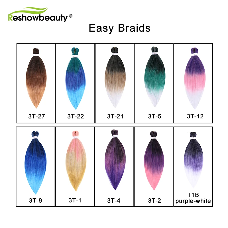 Легко косички предварительно растягивающиеся косички для наращивания волос Синтетические крючком яки 20 26 в Омбре цвет низкая температура волокна Reshowbeauty