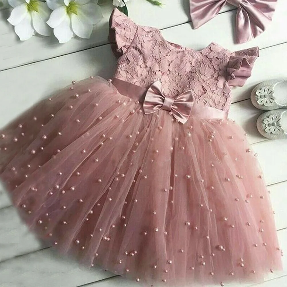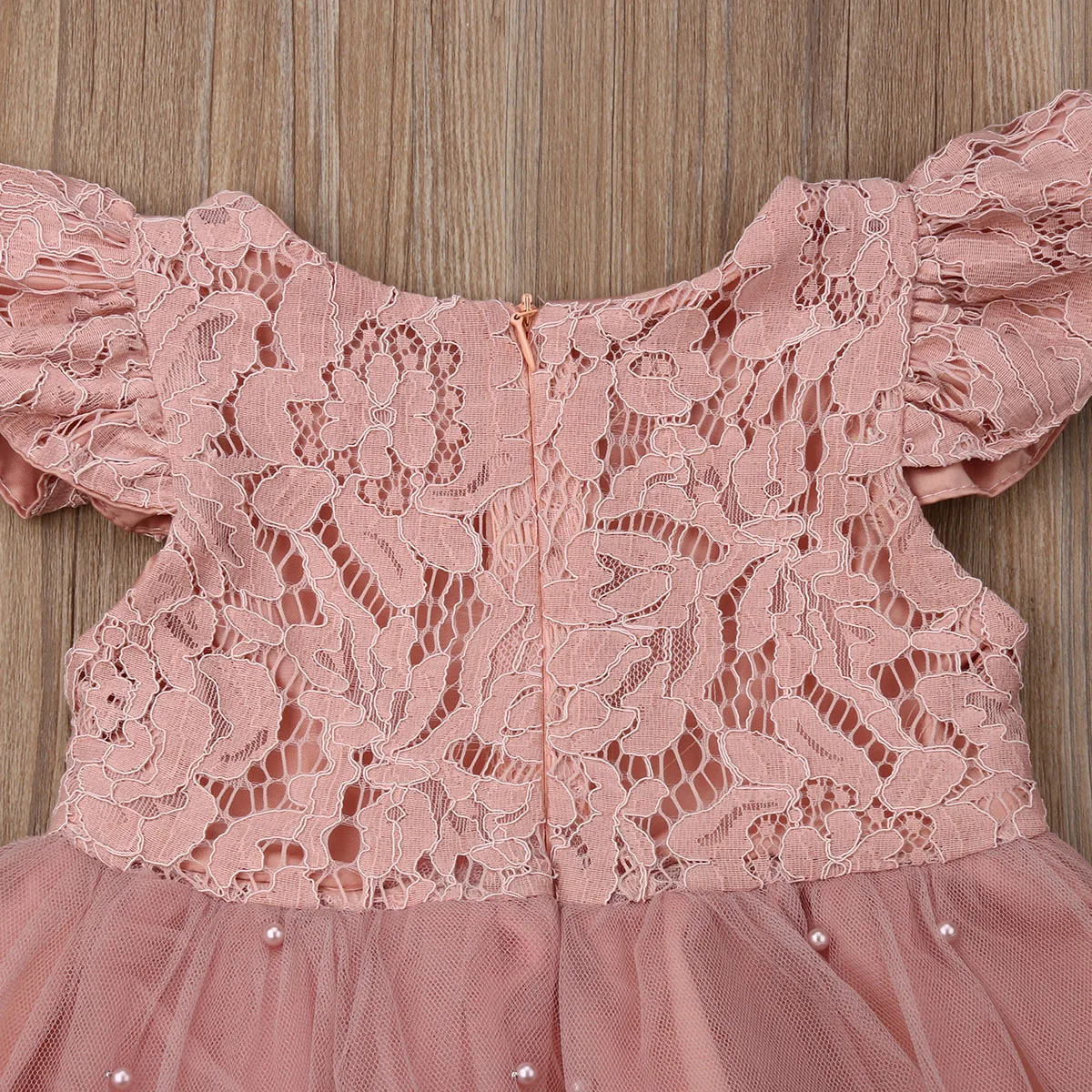 От 2 до 7 лет, платье для девочек, 2021, летние детские платья для малышей, одежда с рукавами-крылышками; С кружевом и жемчугом на высоком каблуке Тюлевое платье-пачка принцессы, нарядные платья для девочек, детская одежда