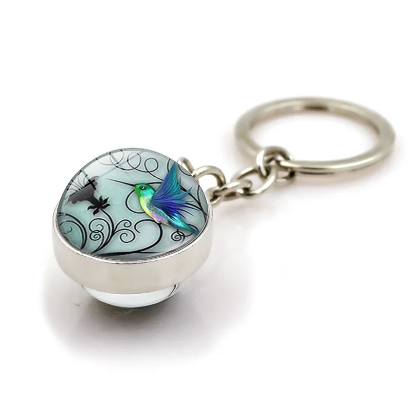FIMAODZ брелок с изображением Колибри синий летать Колибри художественной фотографией кабошоны разрисованные изделия из стекла подвеска брелок кольцо для женщин и девочек