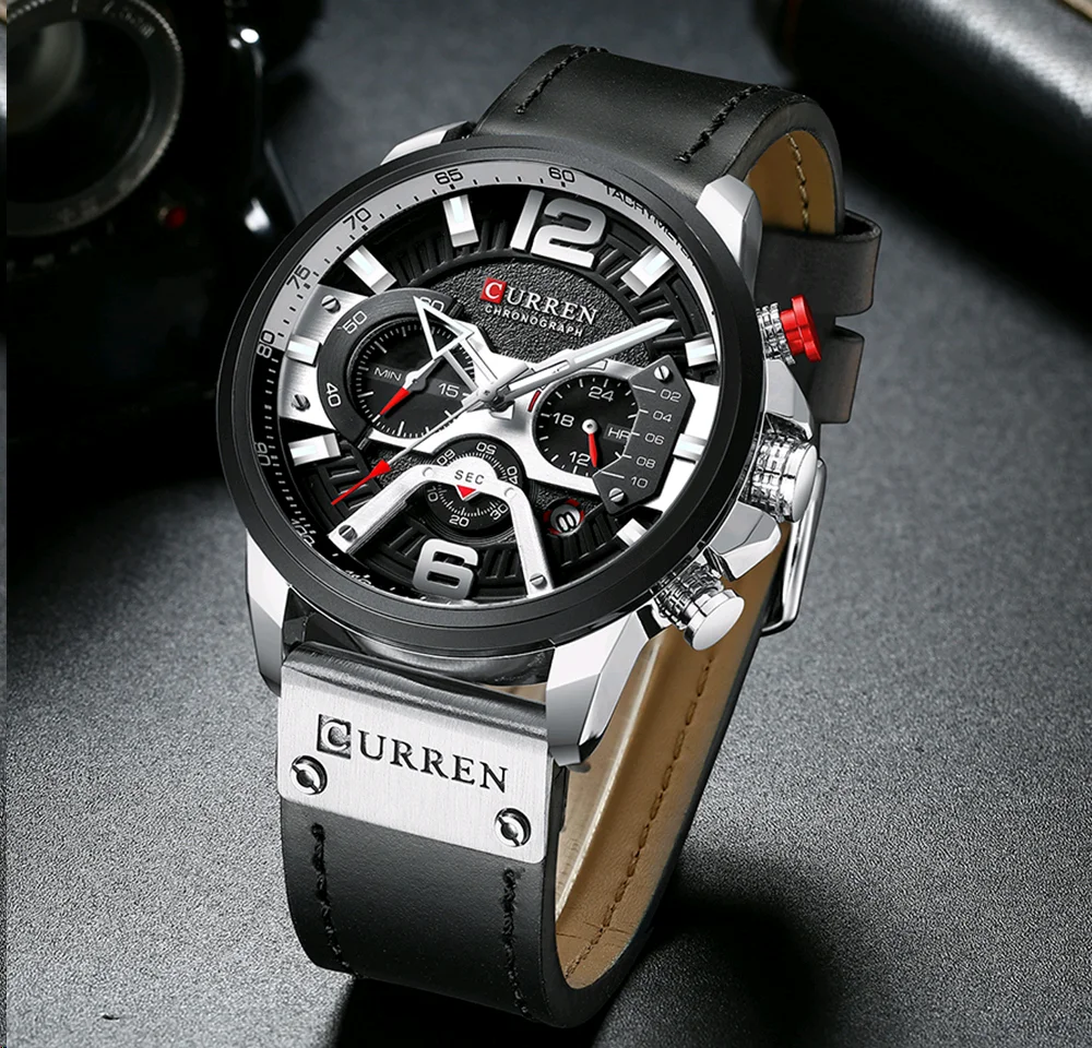Часы CURREN Мужские кварцевые, роскошные брендовые Модные Спортивные Повседневные, водонепроницаемые в стиле милитари, с кожаным ремешком, 8329
