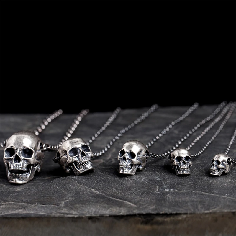 MKENDN 100% Стерлинговое Серебро 925 пробы панк рок череп кулон для ожерелья для мужчин и женщин модные аксессуары ювелирные изделия