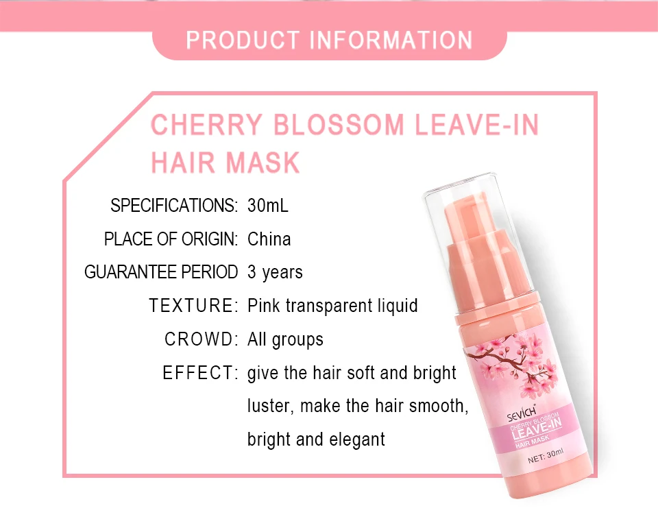 1. Глубокое увлажнение, шелковистая гладкая2. Питает волосы, разглаживает волосы, делает волосы мягкими и блестящими.3. Глубоко увлажняет и питает волосы, помогает восстанавливать поврежденные волосы4. Вес нетто: 30 мл5. Применимый Тип волос: подходит для различных типов волос.