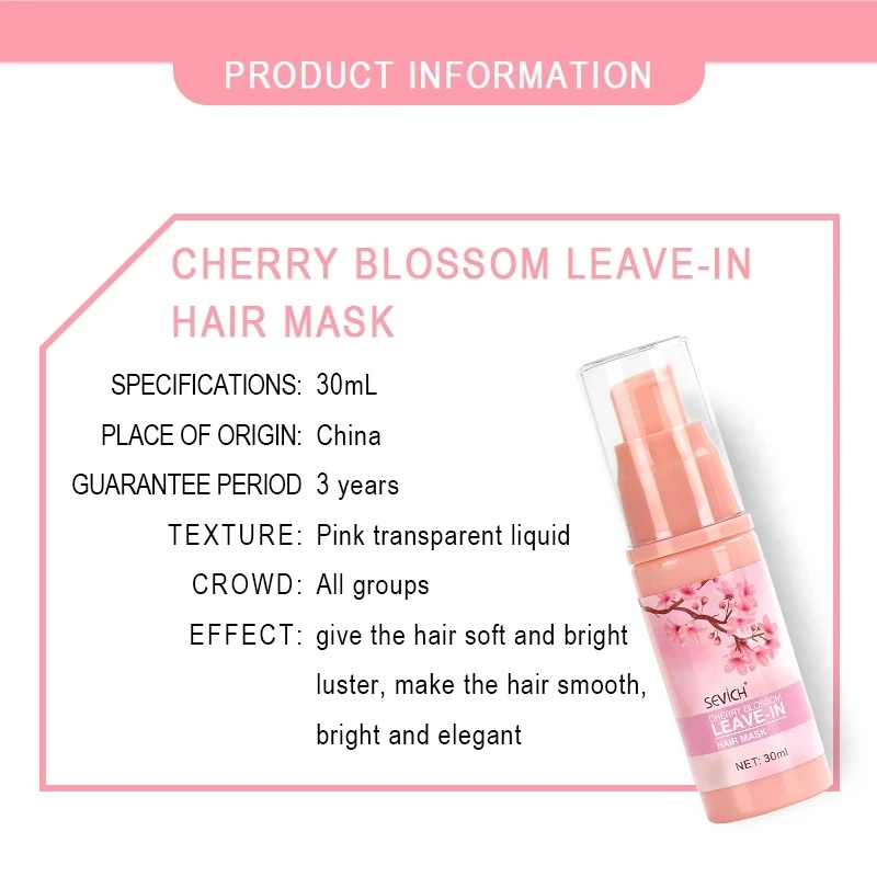 1. Содержит богатую аминокислоту2. Подходит для всех видов волос3. Мгновенные блестящие волосы, гладкий шелк волос, который может сделать хриплые волосы более блестящими, воспроизводят жизненную силу, прочный эластичный свет яркий, очаровательный свет и красоту.4. Вес нетто 100 мл